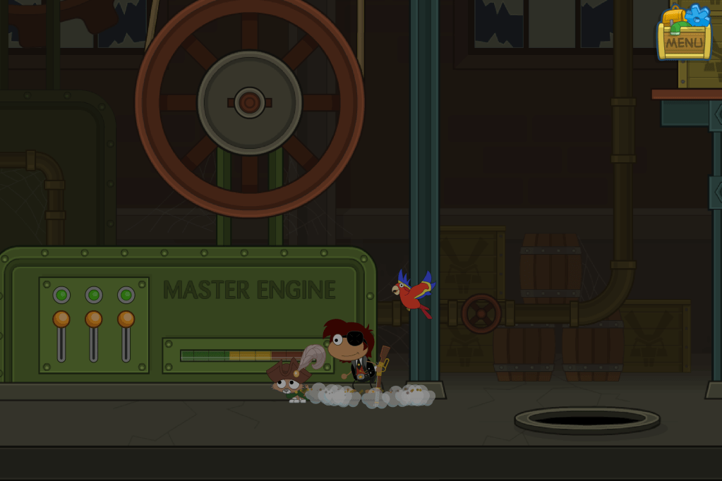 In this next room, you could do the normal thing and start up the engine, use your leg muscles jumping up the various platforms, and stand for an unbearable 10 seconds waiting for the crane to come by. However, safety inspectors all around Poptropica hate this new easy new method!